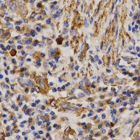 - Immunohistochemistry of paraffin-embedded Human lung cancer using MMP25 Polyclonal Antibody at dilution of 1:200 (40x lens).
