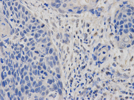 - Immunohistochemical of paraffin-embedded human esophageal cancer using DIABLO antibody at dilution of 1:100 (400x lens).