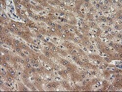 - Immunohistochemical staining of paraffin-embedded human liver tissue within the normal limits using anti-TRIM38 mouse monoclonal antibody. (Heat-induced epitope retrieval by 10mM citric buffer, pH6.0, 120°C for 3min, TA505963)