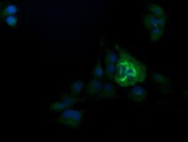 - Anti-TRIM38 mouse monoclonal antibody (TA505979) Immunofluorescent staining of COS7 cells transiently transfected by pCMV6-ENTRY TRIM38(RC201944).