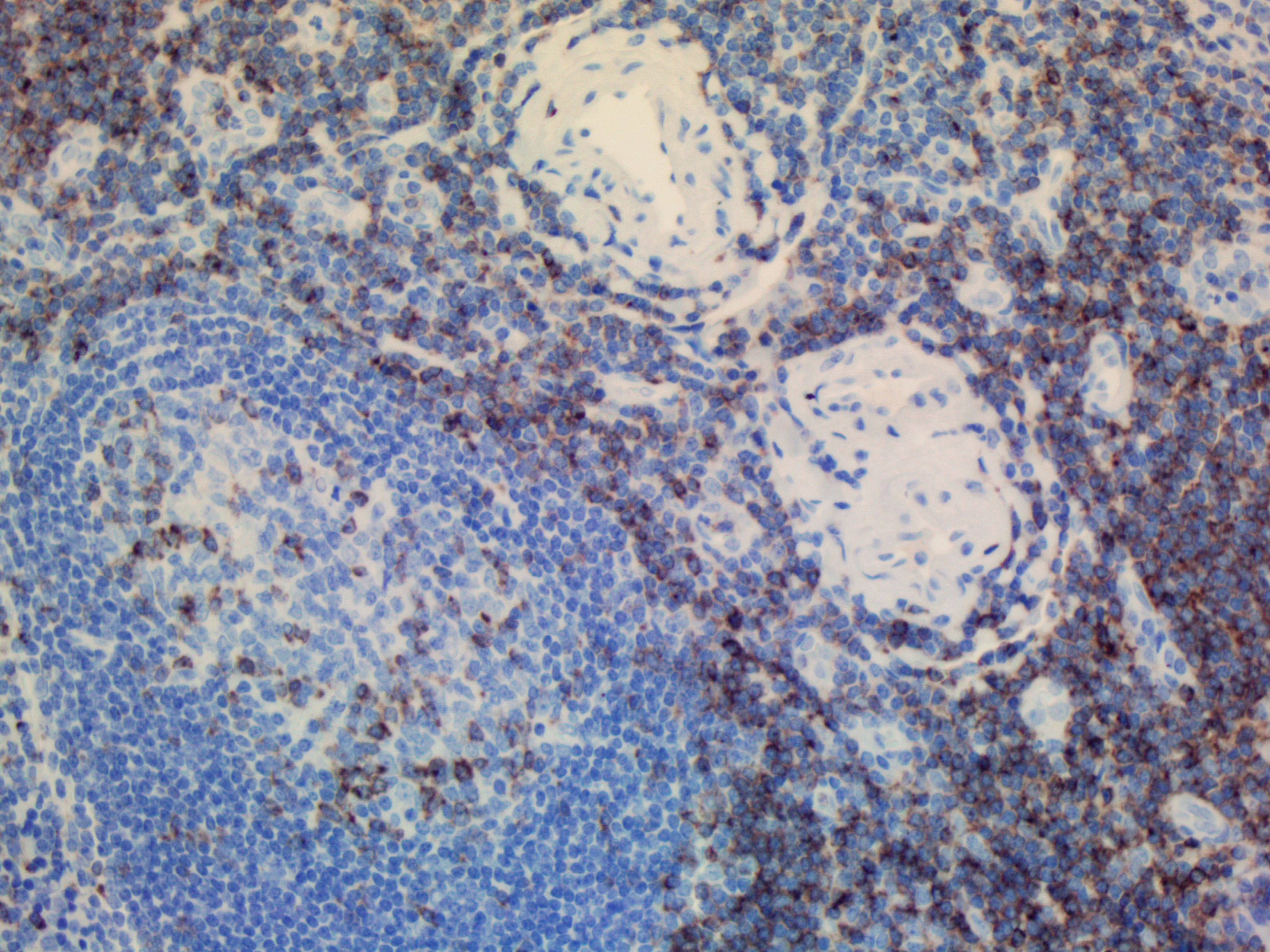 - Immunohistochemical staining of paraffin-embedded Human lymphoma tissue using anti-CD2 mouse monoclonal antibody. (Clone UMAB6, dilution 1:100; heat-induced epitope retrieval by 10mM citric buffer, pH6.0, 120C for 3min)