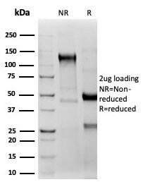 - SDS-PAGE Analyis Purified CD2, Lymphocyte Function Antigen 2 (LFA-2) Recombinant Monoclonal Antibody (Product # 914-RBM7-P1ABX). Confirmation of Purity and Integrity of Antibody.