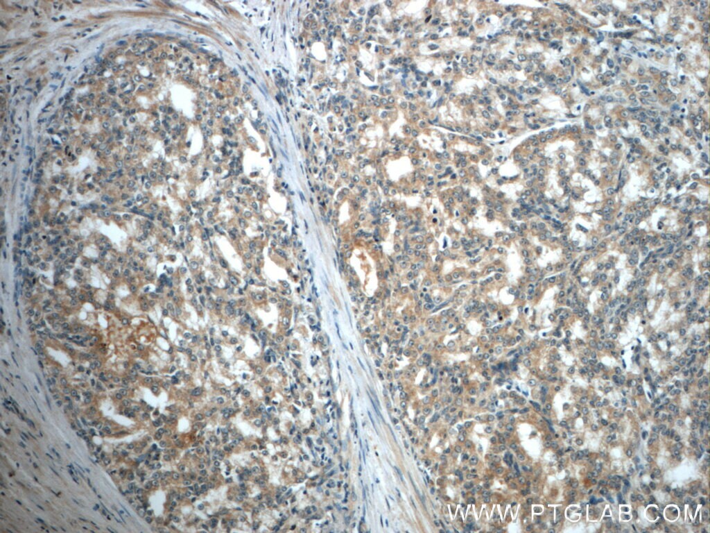- Immunohistochemistry of paraffin-embedded human prostate cancer slide using 18087-1-AP ( MMP26 Antibody) at dilution of 1:50.