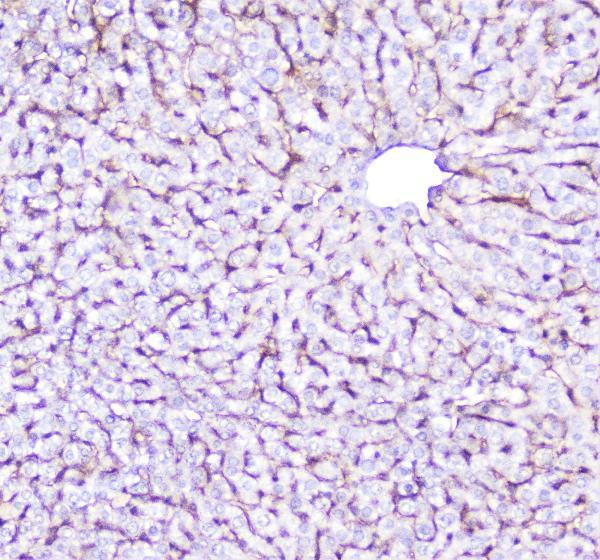 - IHC analysis of Integrin alpha 1 using anti-Integrin alpha 1 antibody (A03829).Integrin alpha 1 was detected in paraffin-embedded section of mouse liver tissue. Heat mediated antigen retrieval was performed in citrate buffer (pH6, epitope retrieval solution) for 20 mins. The tissue section was blocked with 10% goat serum. The tissue section was then incubated with 2μg/ml rabbit anti-Integrin alpha 1 Antibody (A03829) overnight at 4°C. Biotinylated goat anti-rabbit IgG was used as secondary antibody and incubated for 30 minutes at 37°C. The tissue section was developed using Strepavidin-Biotin-Complex (SABC)(Catalog # SA1022) with DAB as the chromogen.