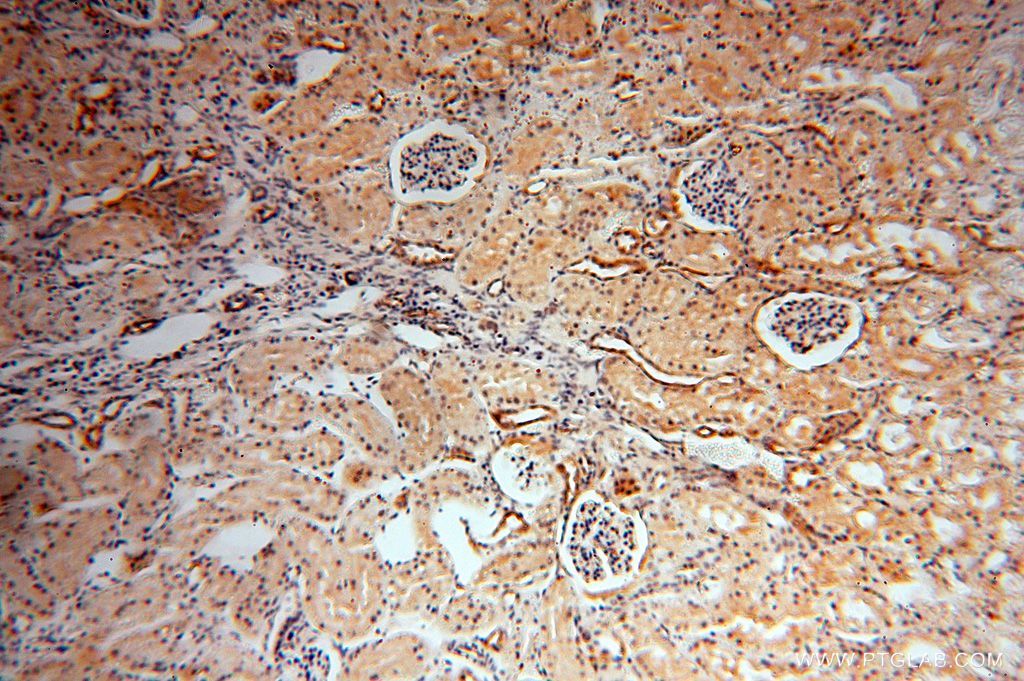 - Immunohistochemical of paraffin-embedded human kidney using 15508-1-AP(Transgelin-2-specific antibody) at dilution of 1:50 (under 10x lens)