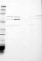 - Western blot analysis of antibody specificity using a routine panel composed of IgG/HSA-depleted human plasma and protein lysates from selected human tissues and cell lines.