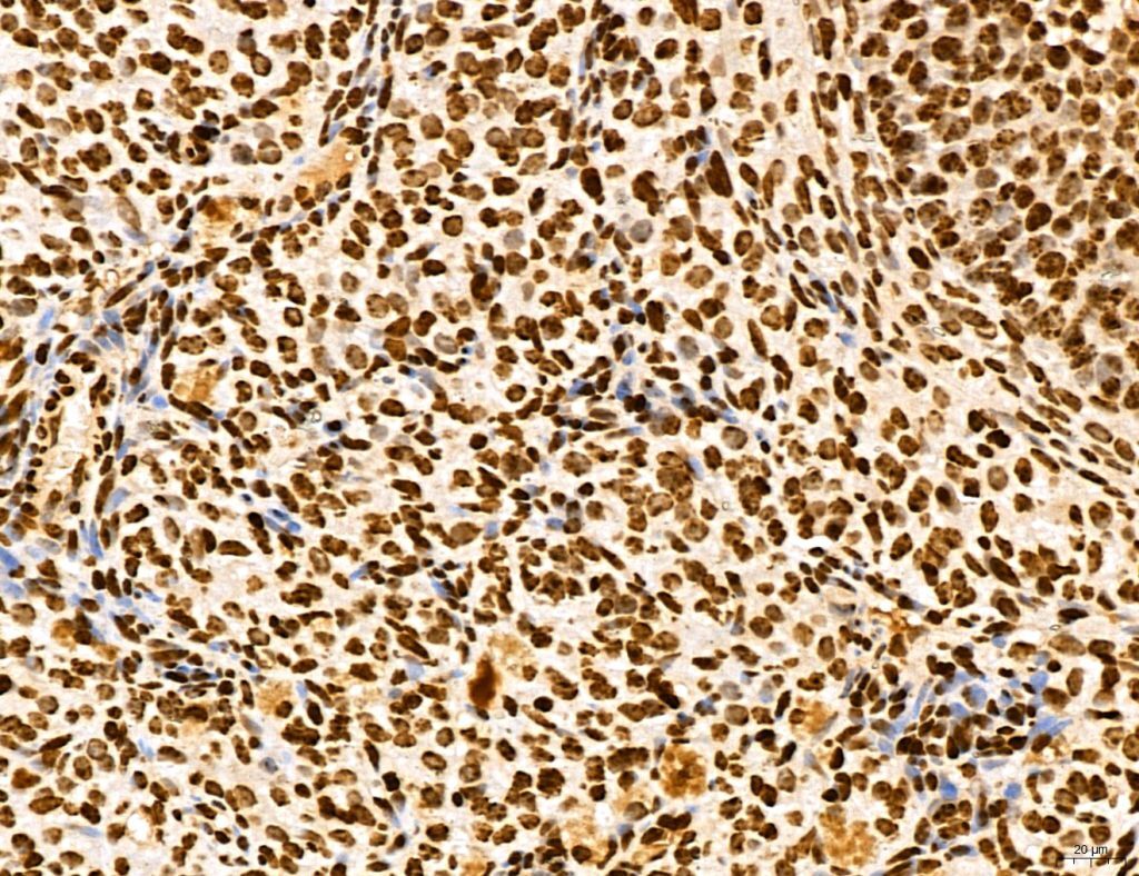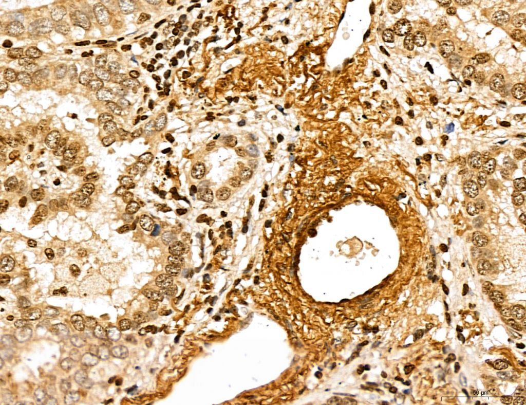 - Immunohistochemistry analysis of MARS in human pancreatic cancer. Samples were treated with formaldehyde and treated with citrate buffer for antigen retrieval, blocked, and incubated (1.5 hours at 22°C) with polyclonal antibody (Product # PA5-115547) at a dilution of 1:100. Secondary staining was applied with HRP conjugated anti-Rabbit.