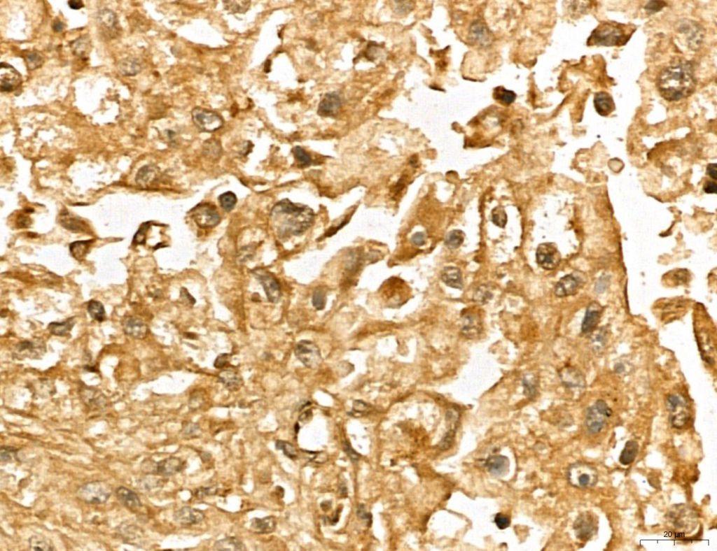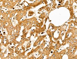 - Immunohistochemistry analysis of MARS in human liver cancer. Samples were treated with formaldehyde and treated with citrate buffer for antigen retrieval, blocked, and incubated (1.5 hours at 22°C) with polyclonal antibody (Product # PA5-115547) at a dilution of 1:100. Secondary staining was applied with HRP conjugated anti-Rabbit.