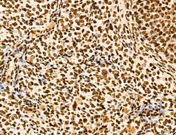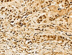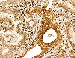 - Immunohistochemistry analysis of MARS in human lung cancer. Samples were treated with formaldehyde and treated with citrate buffer for antigen retrieval, blocked, and incubated (1.5 hours at 22°C) with polyclonal antibody (Product # PA5-115547) at a dilution of 1:100. Secondary staining was applied with HRP conjugated anti-Rabbit.