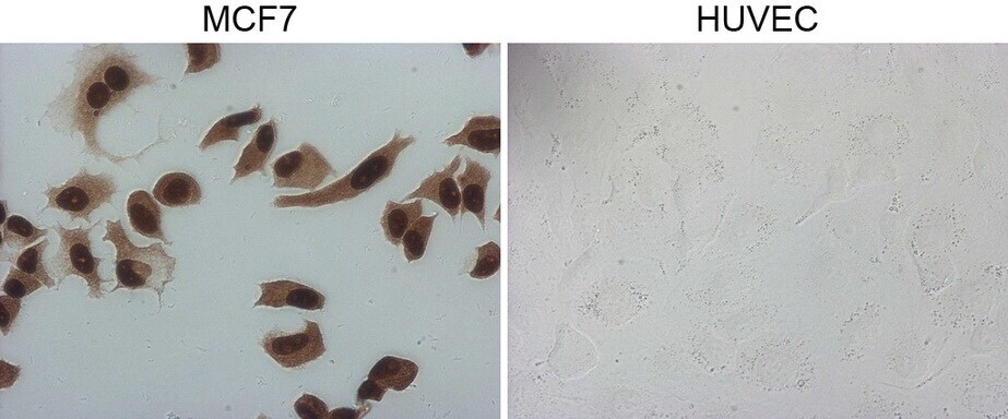 - Immunocytochemistry staining of MCF-7 cells using anti-GATA3 mouse monoclonal antibody (TA809142)(Left). The right is negative control. (1:1000)