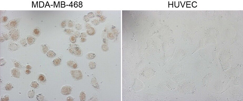 - Immunocytochemistry staining of MDA-MB-468 cells using anti-GATA3 mouse monoclonal antibody (TA809142)(Left). The right is negative control. (1:1000)