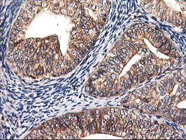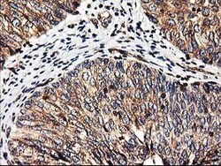 - Immunohistochemical staining of paraffin-embedded Adenocarcinoma of Human endometrium tissue using anti-HMOX2 mouse monoclonal antibody. (Heat-induced epitope retrieval by 10mM citric buffer, pH6.0, 100°C for 10min, TA503822)