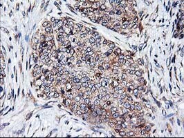 - Immunohistochemical staining of paraffin-embedded Adenocarcinoma of Human breast tissue using anti-HMOX2 mouse monoclonal antibody. (Heat-induced epitope retrieval by 10mM citric buffer, pH6.0, 100°C for 10min, TA503822)