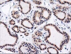 - Immunohistochemical staining of paraffin-embedded Carcinoma of Human thyroid tissue using anti-HMOX2 mouse monoclonal antibody. (Heat-induced epitope retrieval by 10mM citric buffer, pH6.0, 100°C for 10min, TA503822)