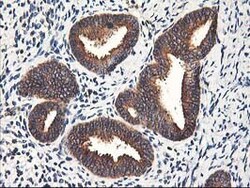 - Immunohistochemical staining of paraffin-embedded human endometrium tissue within the normal limits using anti-HMOX2 mouse monoclonal antibody. (Heat-induced epitope retrieval by 10mM citric buffer, pH6.0, 100°C for 10min, TA503822)