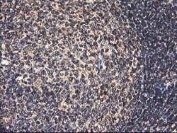 - Immunohistochemical staining of paraffin-embedded human lymphoma tissue using anti-HMOX2 mouse monoclonal antibody. (Heat-induced epitope retrieval by 10mM citric buffer, pH6.0, 100°C for 10min, TA503822)