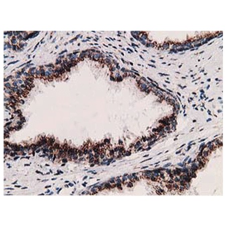 - Immunohistochemistry staining of paraffin-embedded carcinoma of human prostate tissue using ERGIC-53 monoclonal antibody (OTI1A8).