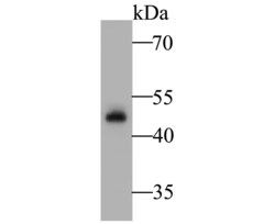 - Western blot analysis of GPA33 in human small intestine tissue lysate. Samples were transferred to PVDF membrane, blocked with 5% BSA (1 hour), incubated with GPA33 monoclonal antibody (Product # MA5-34867), at a dilution of 1:500, followed by Goat Anti-Rabbit IgG-HRP (1 hour) with a dilution of 1:5000.