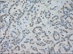 - Immunohistochemical staining of paraffin-embedded Carcinoma of kidney tissue using anti-SATB1 mouse monoclonal antibody. (Dilution 1:50).