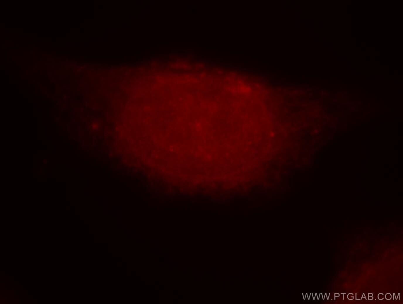 - Immunofluorescent analysis of Hela cells, using SOX13 antibody 18902-1-AP at 1:25 dilution and Rhodamine-labeled goat anti-rabbit IgG (red).