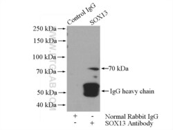 - IP result of anti-SOX13 (IP: 18902-1-AP, 4 µg; Detection: 18902-1-AP 1:500) with SH-SY5Y cells lysate 1200 µg.