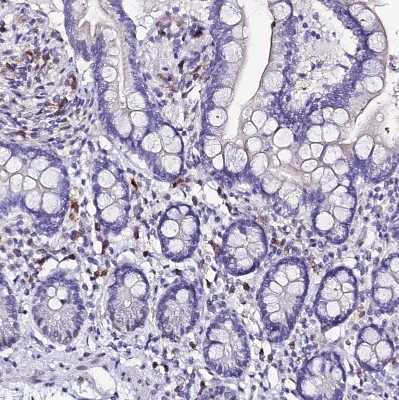 - Immunohistochemistry-Paraffin: MCM10 Antibody [NBP1-92102] - Staining of human small intestine shows strong positivity in lymphoid cells.