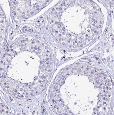 - Immunohistochemistry-Paraffin: MCM10 Antibody [NBP1-92102] - Staining of human testis shows no positivity in cells in seminiferous ducts as expected.