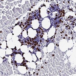 - Immunohistochemistry-Paraffin: MCM10 Antibody [NBP1-92102] - Staining of human bone marrow shows strong nuclear positivity in hematopoietic cells.