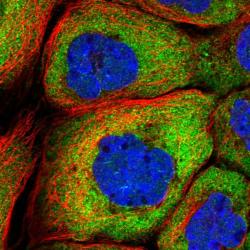 - Immunofluorescent staining of human cell line A-431 shows localization to cytosol.