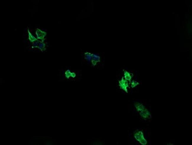 - Anti-ARMC1 mouse monoclonal antibody (TA505405) immunofluorescent staining of COS7 cells transiently transfected by pCMV6-ENTRY ARMC1(RC200135).