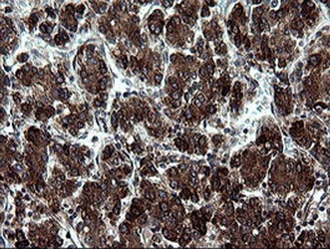 - Immunohistochemical staining of paraffin-embedded Carcinoma of Human liver tissue using anti-ARMC1 mouse monoclonal antibody. (Heat-induced epitope retrieval by 10mM citric buffer, pH6.0, 120°C for 3min, TA505405)