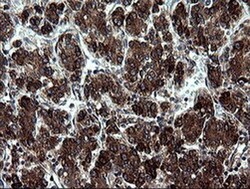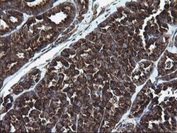 - Immunohistochemical staining of paraffin-embedded Carcinoma of Human thyroid tissue using anti-ARMC1 mouse monoclonal antibody. (Heat-induced epitope retrieval by 10mM citric buffer, pH6.0, 120°C for 3min, TA505405)