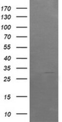 - HEK293T cells were transfected with the pCMV6-ENTRY control (Left lane) or pCMV6-ENTRY ARMC1 (RC200135, Right lane) cDNA for 48 hrs and lysed. Equivalent amounts of cell lysates (5 µg per lane) were separated by SDS-PAGE and immunoblotted with anti-ARMC1. Positive lysates LY413306 (100 µg) and LC413306 (20 µg) can be purchased separately from OriGene.