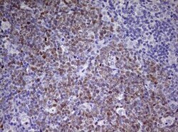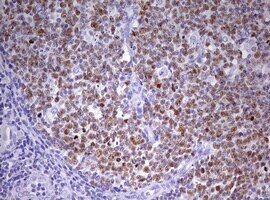 - Immunohistochemical staining of paraffin-embedded human lymph node tissue within the normal limits using anti-CDCA7L mouse monoclonal antibody. (Heat-induced epitope retrieval by 10mM citric buffer, pH6.0, 120°C for 3min, TA802969)