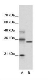 - A: Marker, B: Transfected 293T Cell Lysate. This image was taken for the unconjugated form of this product. Other forms have not been tested.