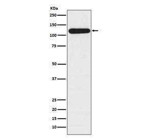 - Western blot testing of human HepG2 lysate with BUB1B antibody. Predicted molecular weight ~120 kDa.