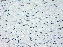 - Immunohistochemical staining of paraffin-embedded endometrium tissue within the normal limits using anti-BUB1Bmouse monoclonal antibody. (Heat-induced epitope retrieval by 10mM citric buffer, pH6.0, 100°C for 10min, TA500609, Dilution 1:50)
