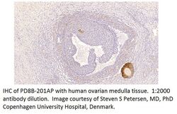 - IHC of PD8B-201AP with human ovarian medulla tissue. 1:2000 antibody dilution. Image courtesy of Steven S Petersen, MD, PhD Copenhagen University Hospital, Denmark.