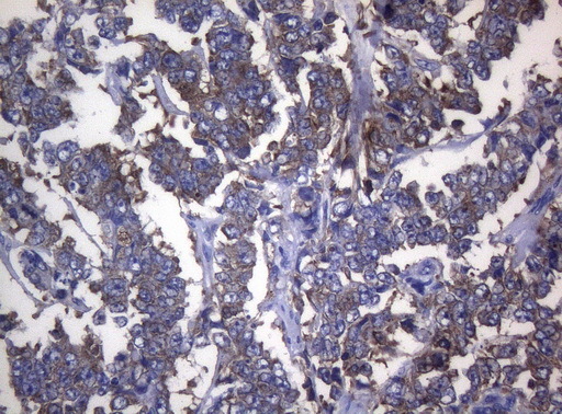 - Immunohistochemical staining of paraffin-embedded Adenocarcinoma of Human endometrium tissue using anti-RPL10 mouse monoclonal antibody.(Heat-induced epitope retrieval by 1mM EDTA in 10mM Tris buffer (pH8.5) at 120°C for 3 min, TA807673)(1:150)