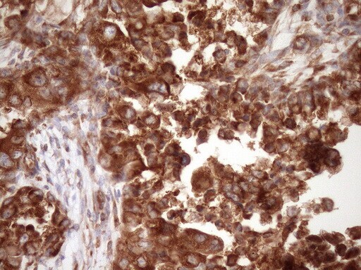 - Immunohistochemistry was performed on paraffin-embedded adenocarcinoma of human endometrium tissue. To expose target proteins, heat-induced epitope retrieval by Tris-EDTA, pH8.0. Following antigen retrieval, tissues were probed with a RPL10 monoclonal antibody (Product # MA5-26901) at a dilution of 1:150.