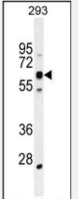 - Western Blot: KRBA2 Antibody [NBP2-29996] - western blot analysis in 293 cell line lysates (35ug/lane).This demonstrates the KCat. #A2 antibody detected the KCat. #A2 protein (arrow).