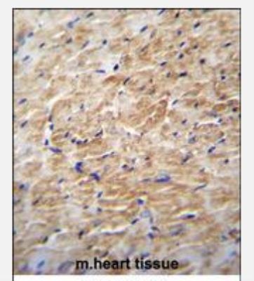 - Immunohistochemistry-Paraffin: KRBA2 Antibody [NBP2-29996] - immunohistochemistry analysis in formalin fixed and paraffin embedded m.heart tissue followed by peroxidase conjugation of the secondary antibody and DAB staining.This data demonstrates the use of (Center) for immunohistochemistry. Clinical relevance has not been evaluated.