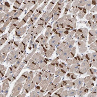 - Immunohistochemistry-Paraffin: KRBA2 Antibody [NBP1-86005] - Staining of human heart muscle shows strong positivity in the intercalated discs.
