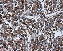 - Immunohistochemical staining of paraffin-embedded Carcinoma of liver tissue using anti-BHMT mouse monoclonal antibody. (Dilution 1:50).