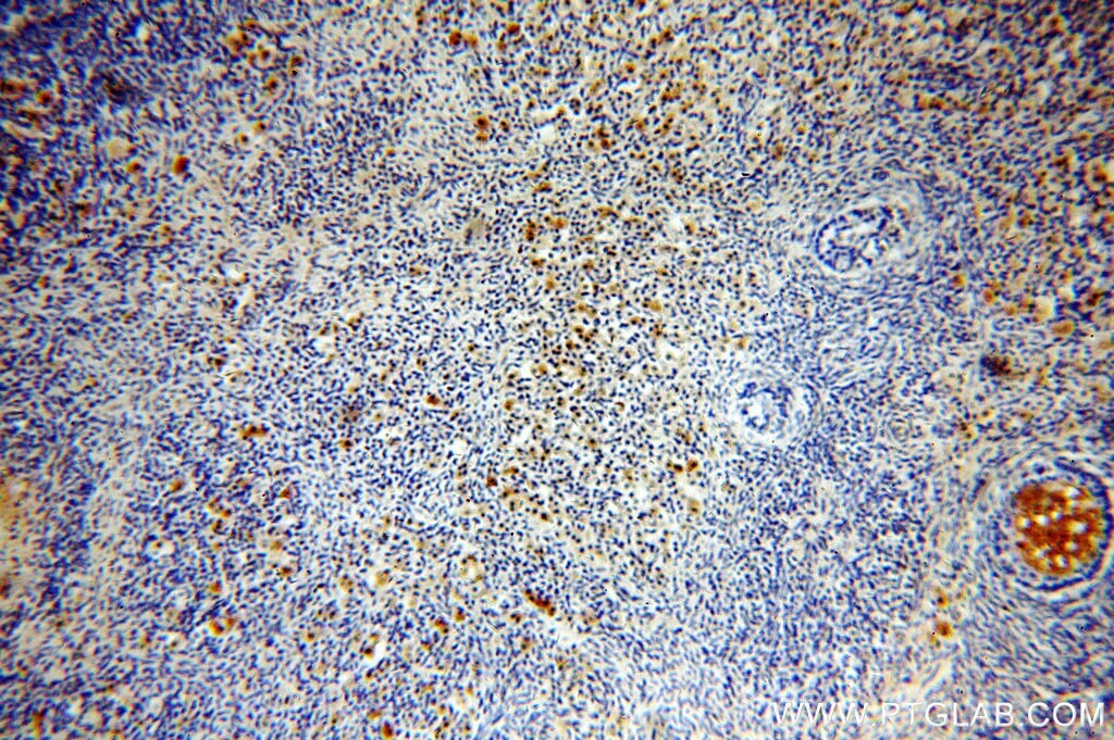 - Immunohistochemistry of paraffin-embedded human ovary using 19841-1-AP (KTN1 antibody) at dilution of 1:100 (under 10x lens).