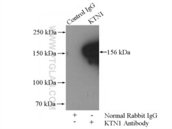 - IP result of anti-KTN1 (IP:19841-1-AP, 4ug; Detection:19841-1-AP 1:500) with Jurkat cells lysate 1200ug.