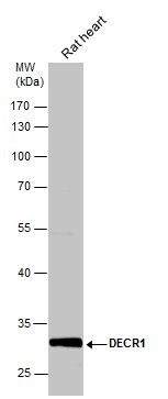 - Rat tissue extract (50 ?g) was separated by 10% SDS-PAGE, and the membrane was blotted with DECR1 antibody (GTX109608) diluted at 1:10000. The HRP-conjugated anti-rabbit IgG antibody (GTX213110-01) was used to detect the primary antibody.