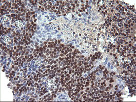 - Immunohistochemical staining of paraffin-embedded Human tonsil within the normal limits using anti-TRIM22 mouse monoclonal antibody. (Heat-induced epitope retrieval by 10mM citric buffer, pH6.0, 120C for 3min, TA505281)