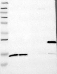 - Western blot analysis of antibody specificity using a routine panel composed of IgG/HSA-depleted human plasma and protein lysates from selected human tissues and cell lines.