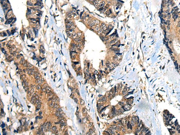 - Immunohistochemistry of paraffin-embedded Human colorectal cancer tissue using BMPER Polyclonal Antibody at dilution of 1:40(×200)